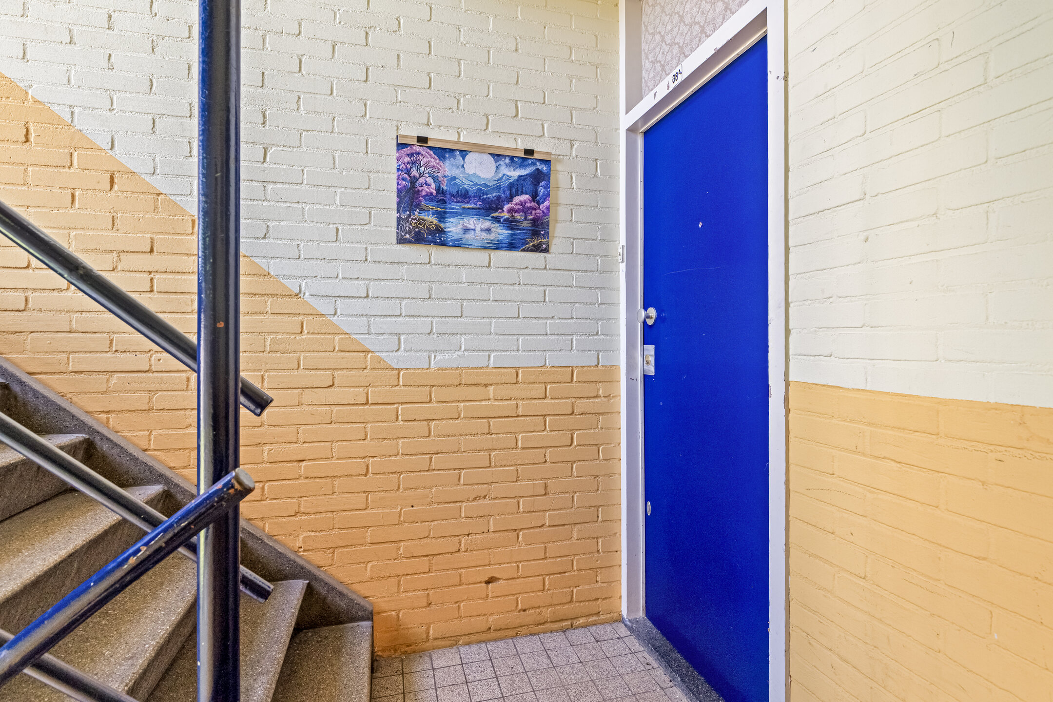 • Gemeenschappelijke entree met brievenbussentableau, bel/intercom en trapopgang naar verdieping.