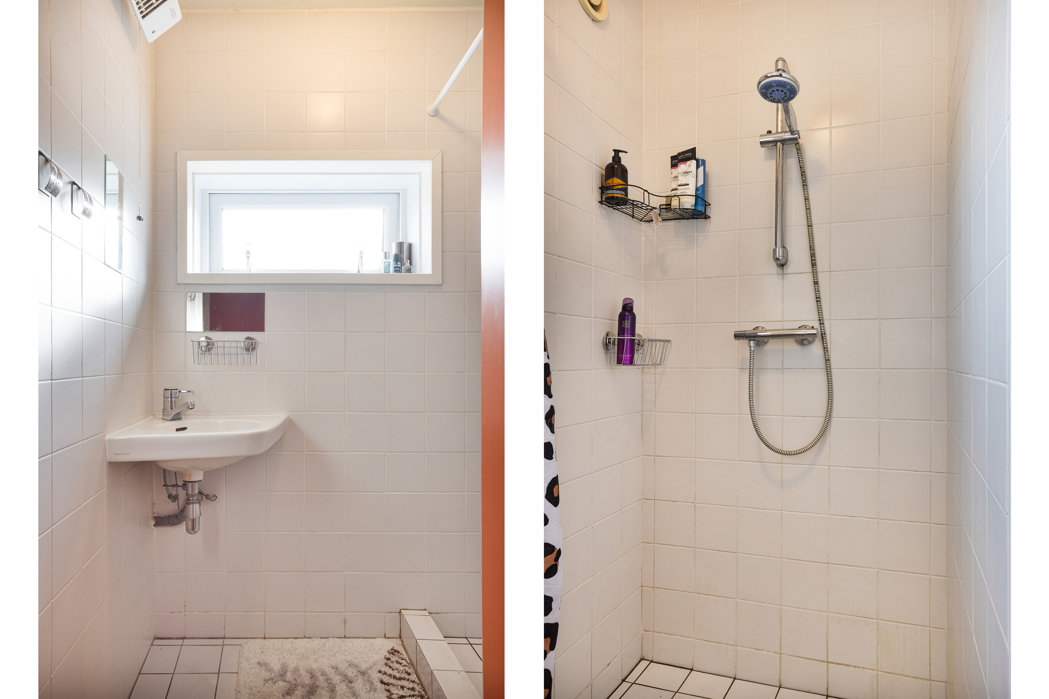 • Kleine, nette badkamer voorzien van vaste wastafel, douche en kunststof kozijnen met HR++ dubbele beglazing.