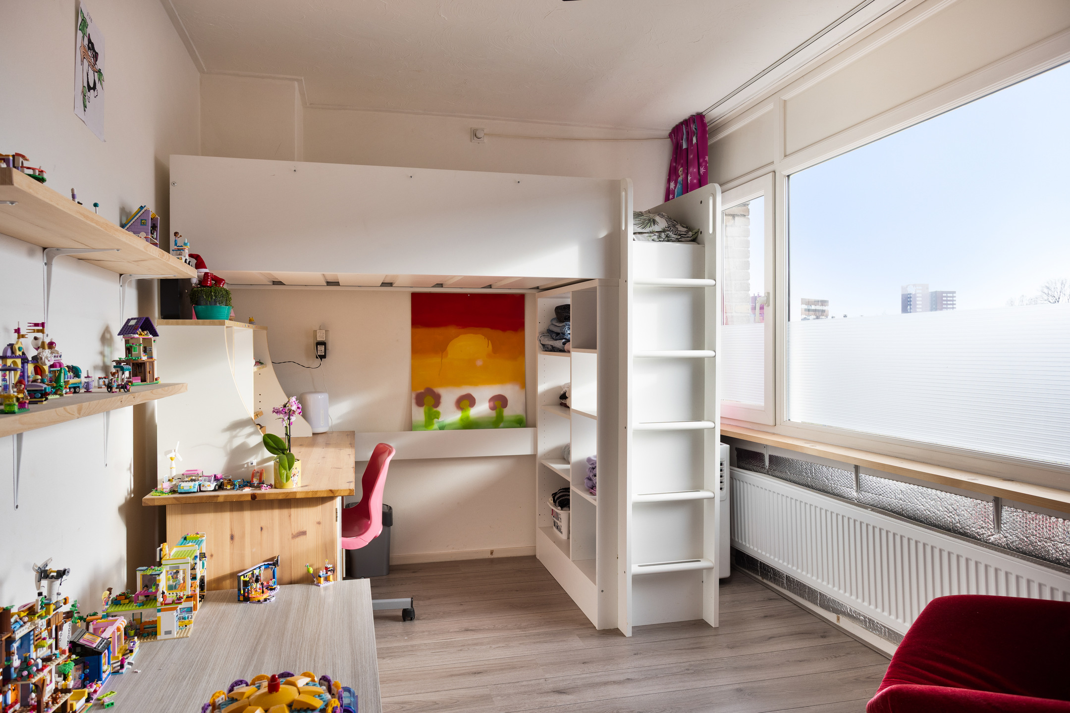 • Slaapkamer II (circa 9 m2) met vaste kast en kunststof kozijnen voorzien van HR++ dubbele beglazing.