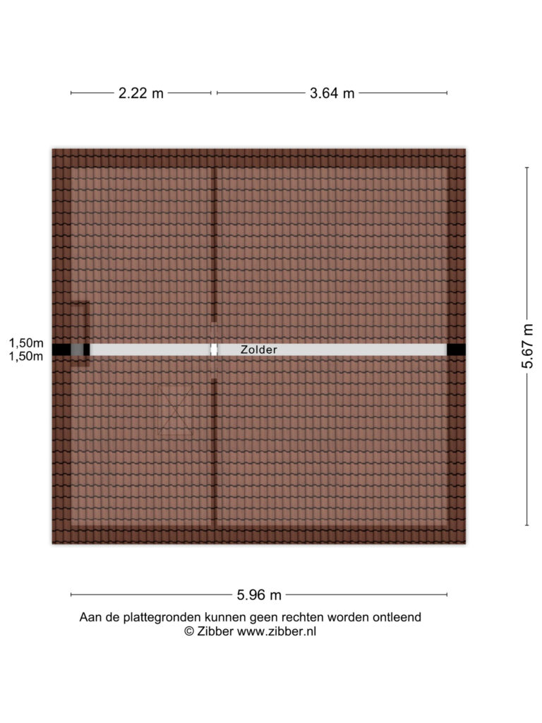• Bergzolder met nokhoogte van circa 1,5 meter.