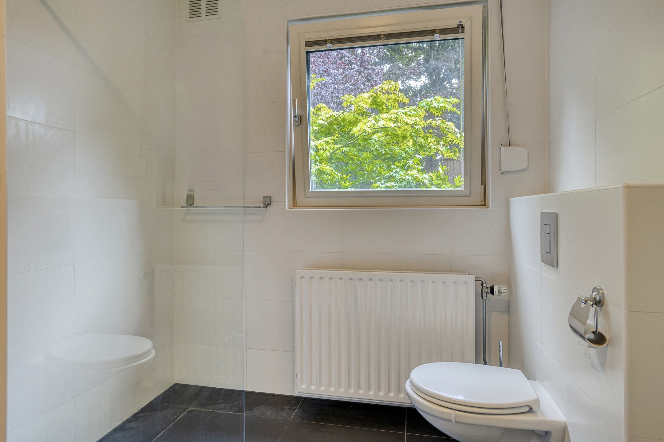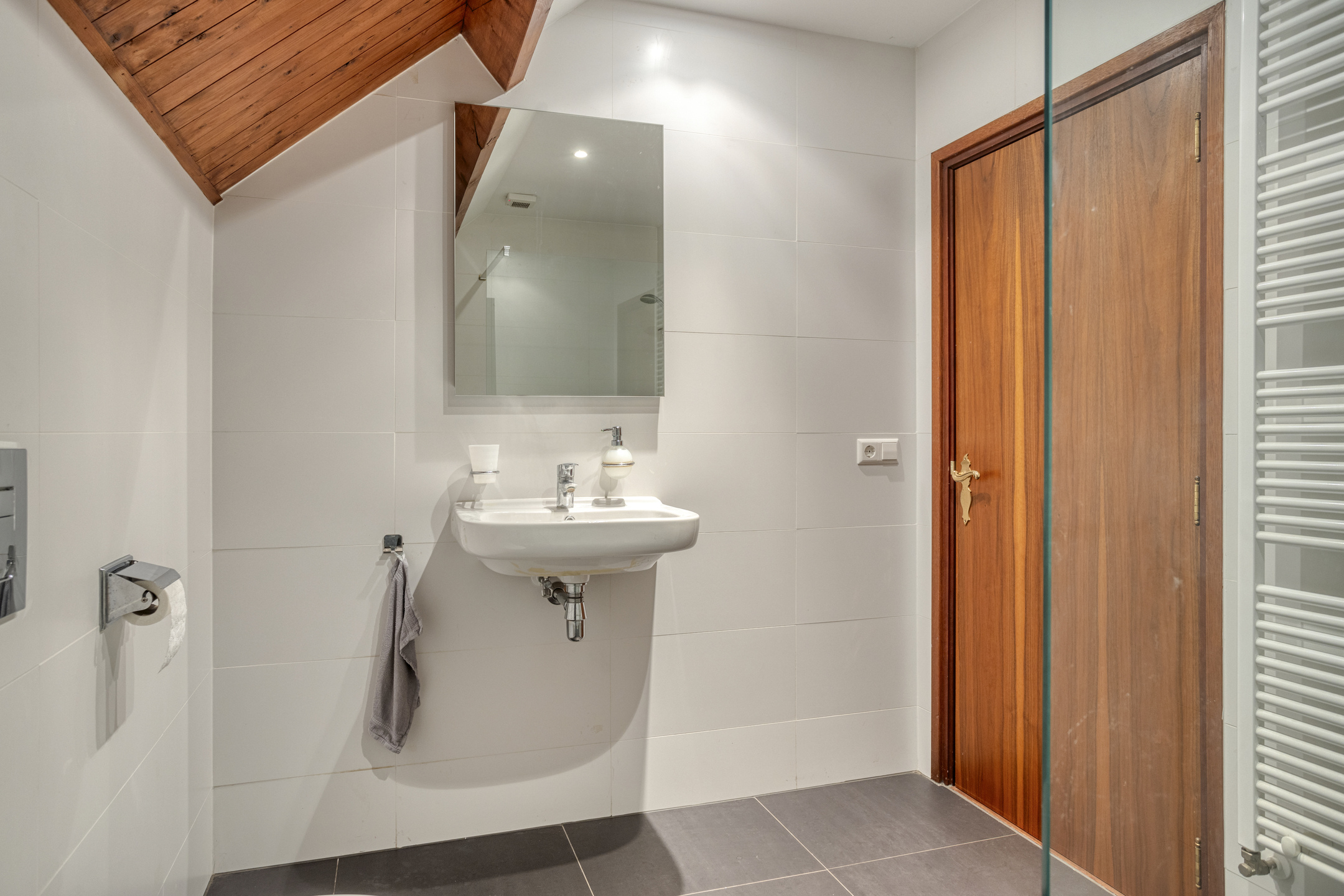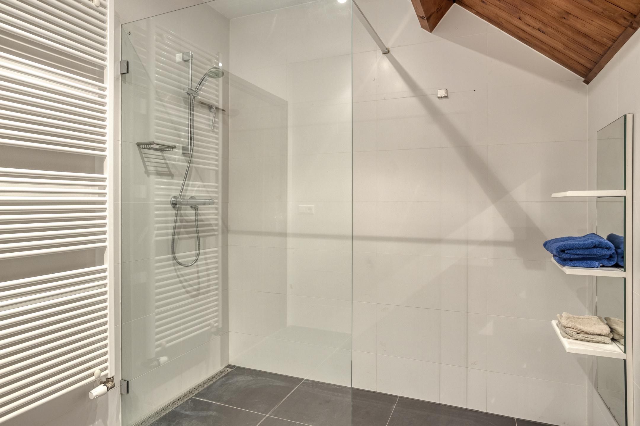 • Badkamer II voorzien van inloopdouche, wandcloset, vaste wastafel en handdoekradiator.
