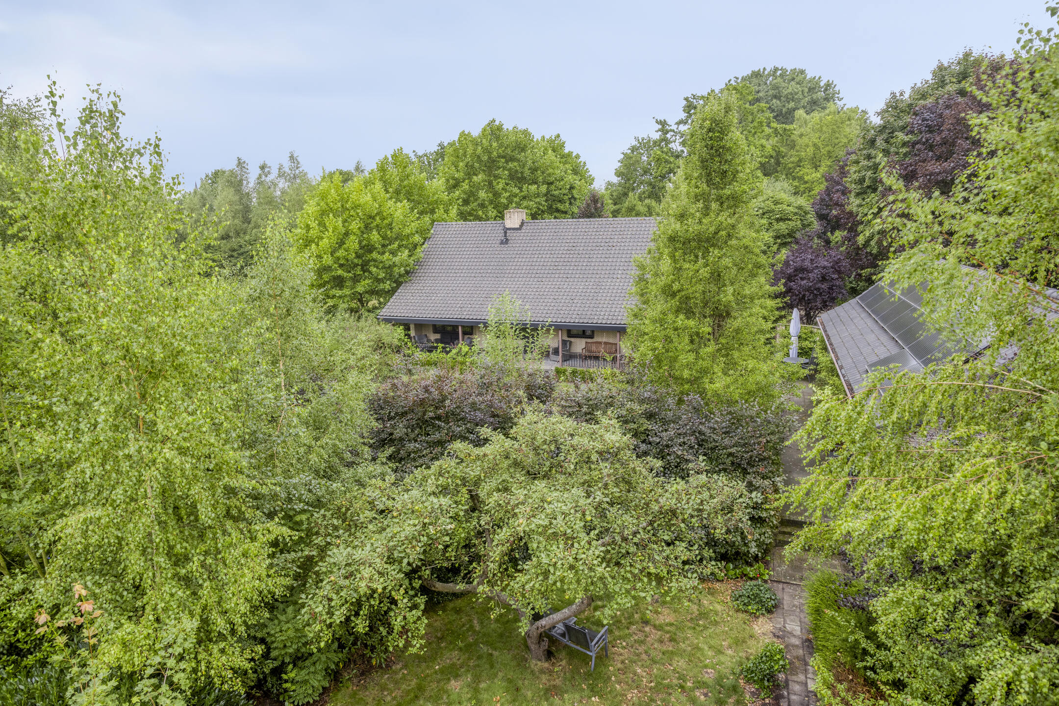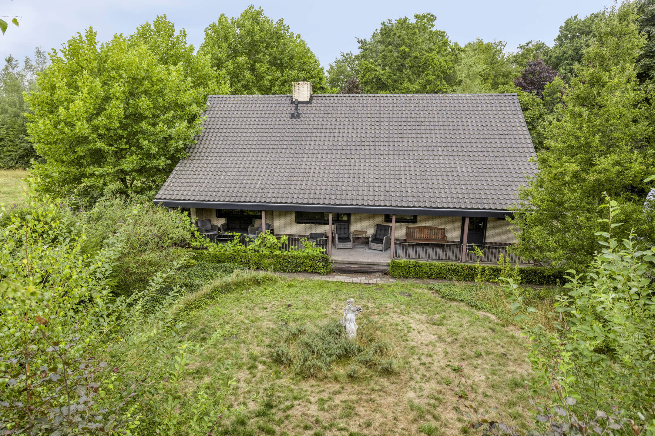 • Absolute privacy, geheel “omzoomd” door volgroeide bomen en struiken.