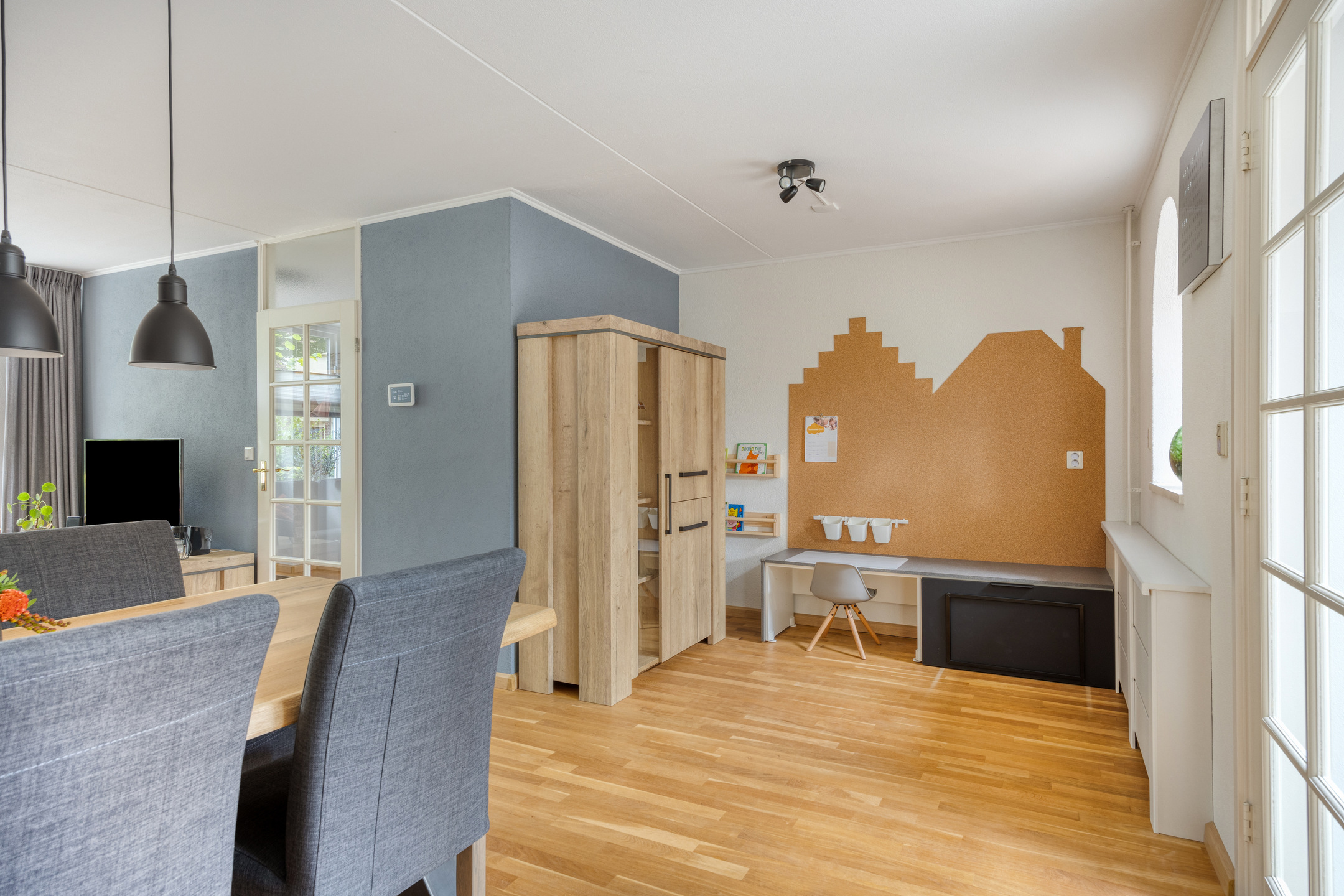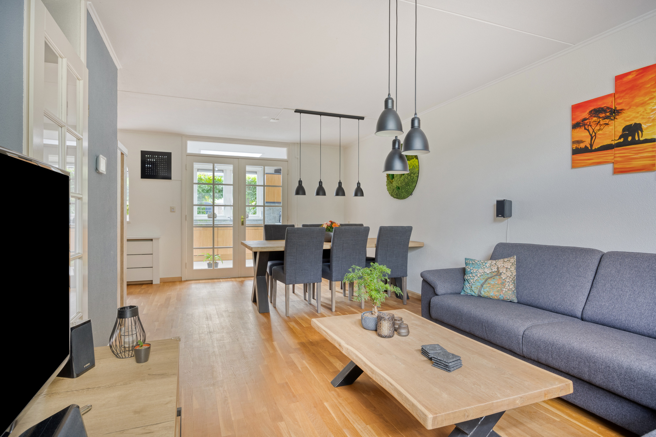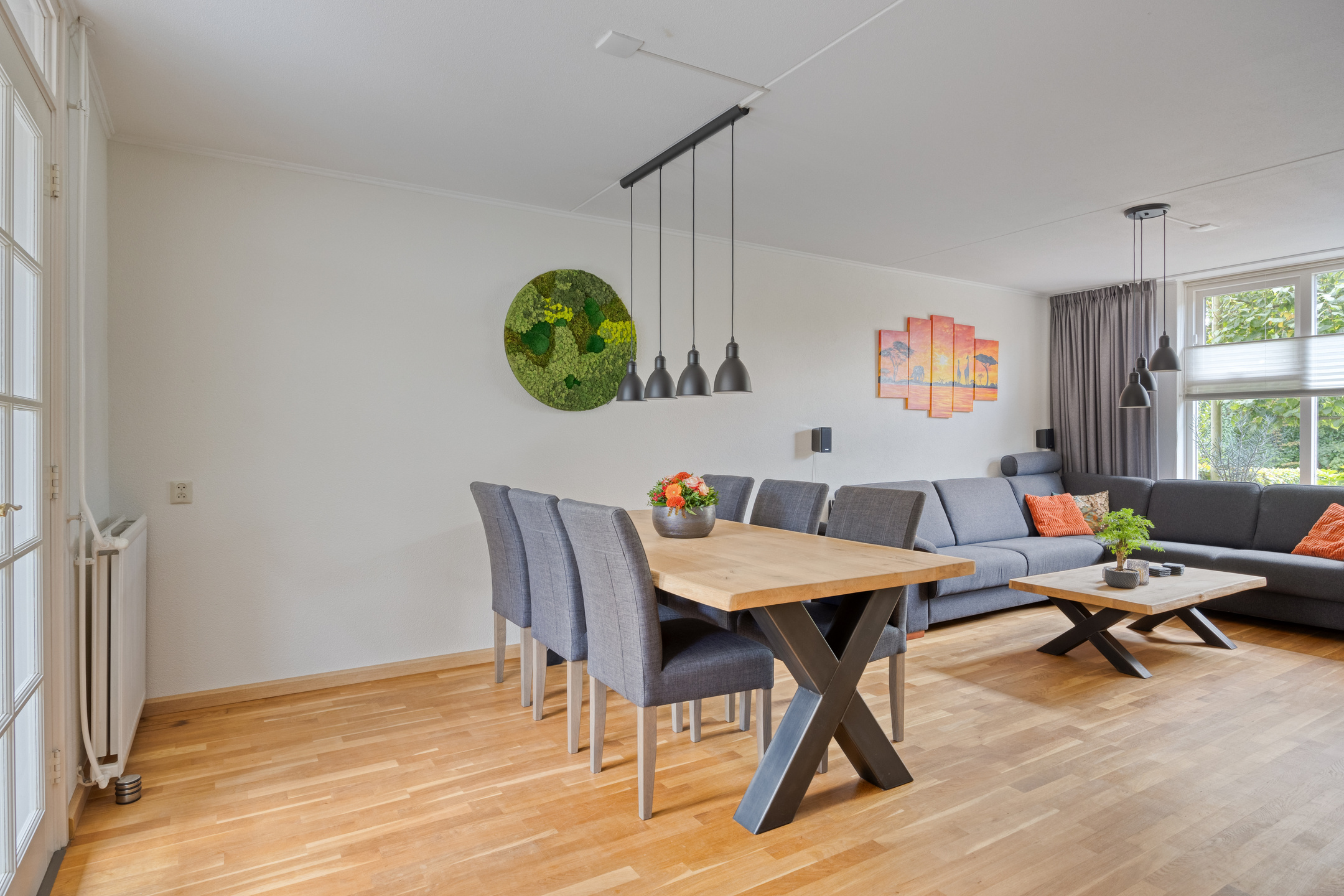 • Woonkamer (circa 30 m2) met dubbele glazen deur naar uitgebouwde woonkeuken.