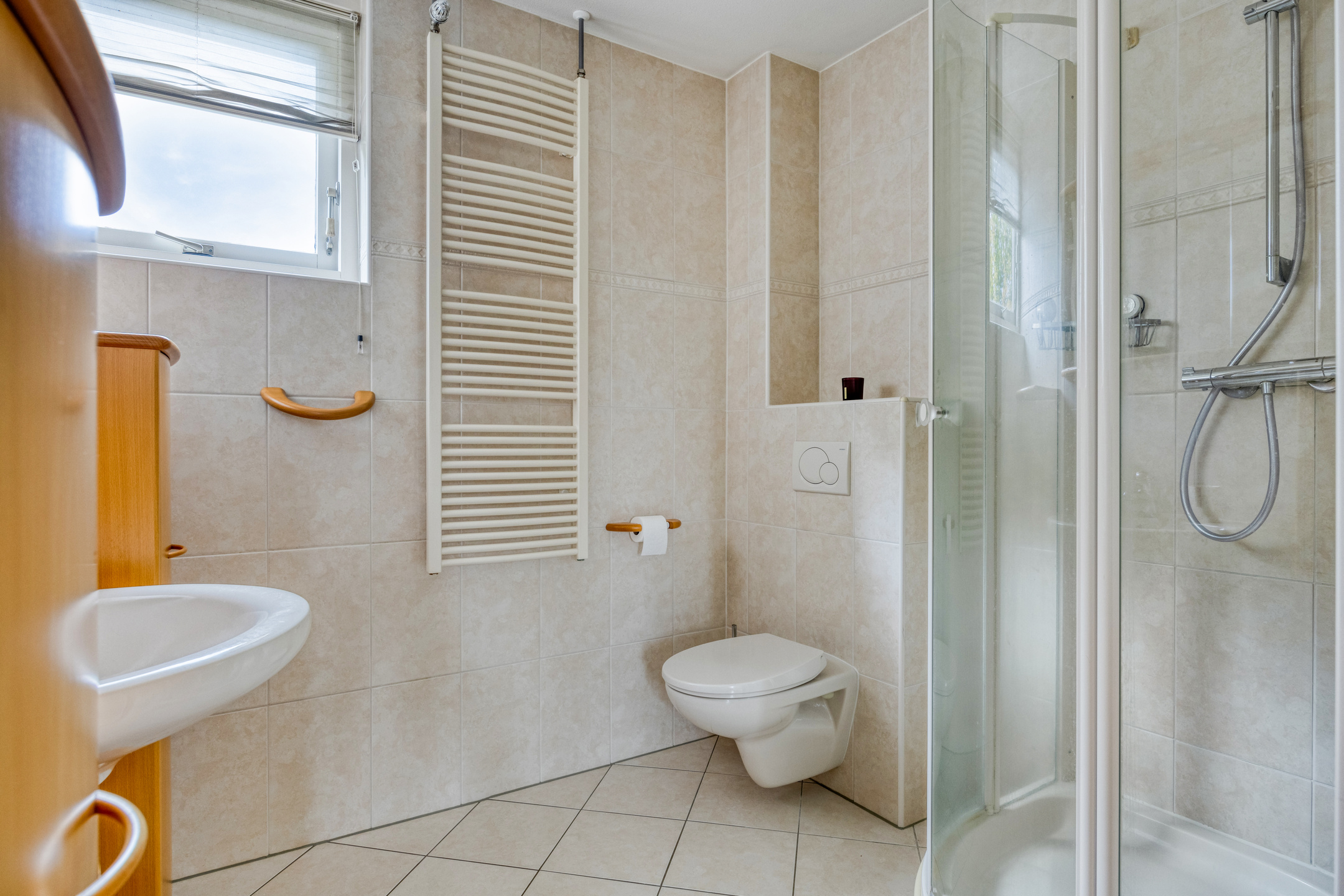 • Nette badkamer voorzien van wandcloset, douchecabine, vaste wastafel, handdoekradiator en elektrische vloerverwarming.