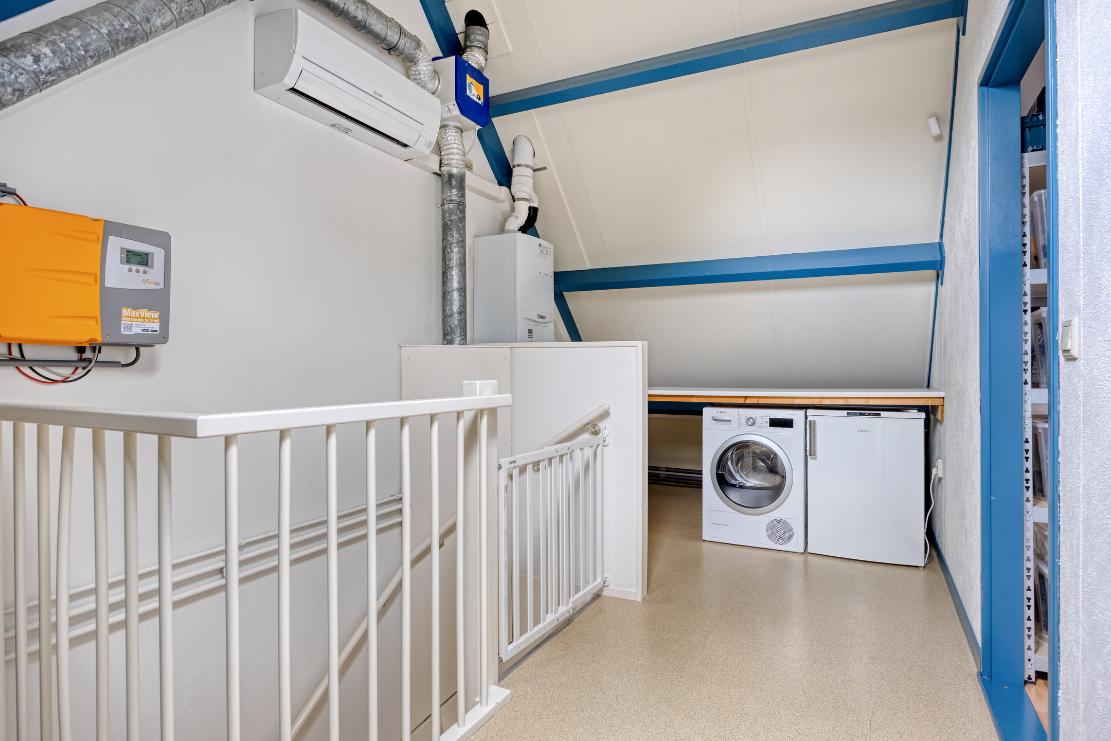 • Voorzolder met dakraam, wasmachineaansluiting, omvormer zonnepanelen, HR CV combiketel (2022), airco (2019) en mechanische ventilatie.