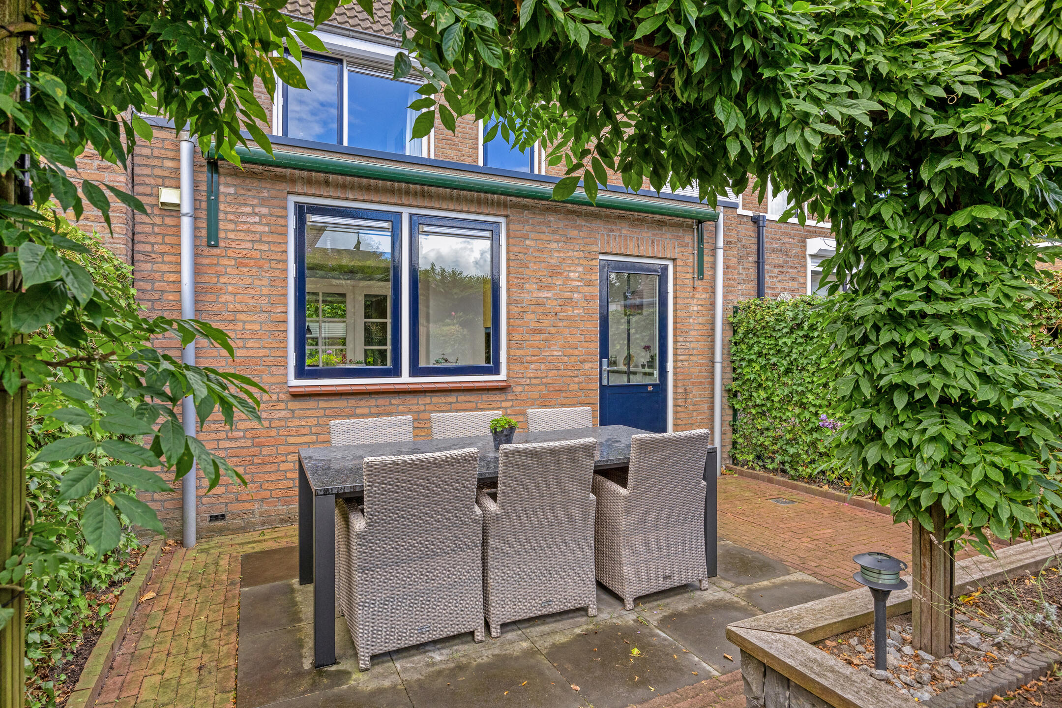Op goede stand, in rustige straat gelegen, verrassend grote, uitgebouwde, geschakelde woning met voortuin en achtertuin voorzien van berging en achterom.