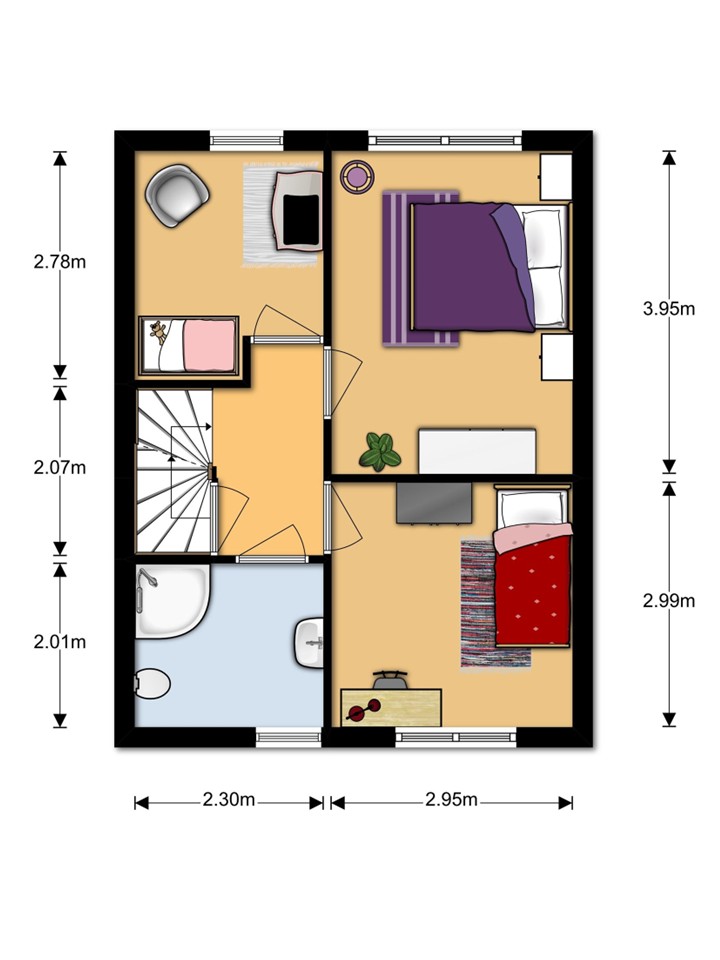• Slaapkamer III aan de achterzijde (circa 6 m2).