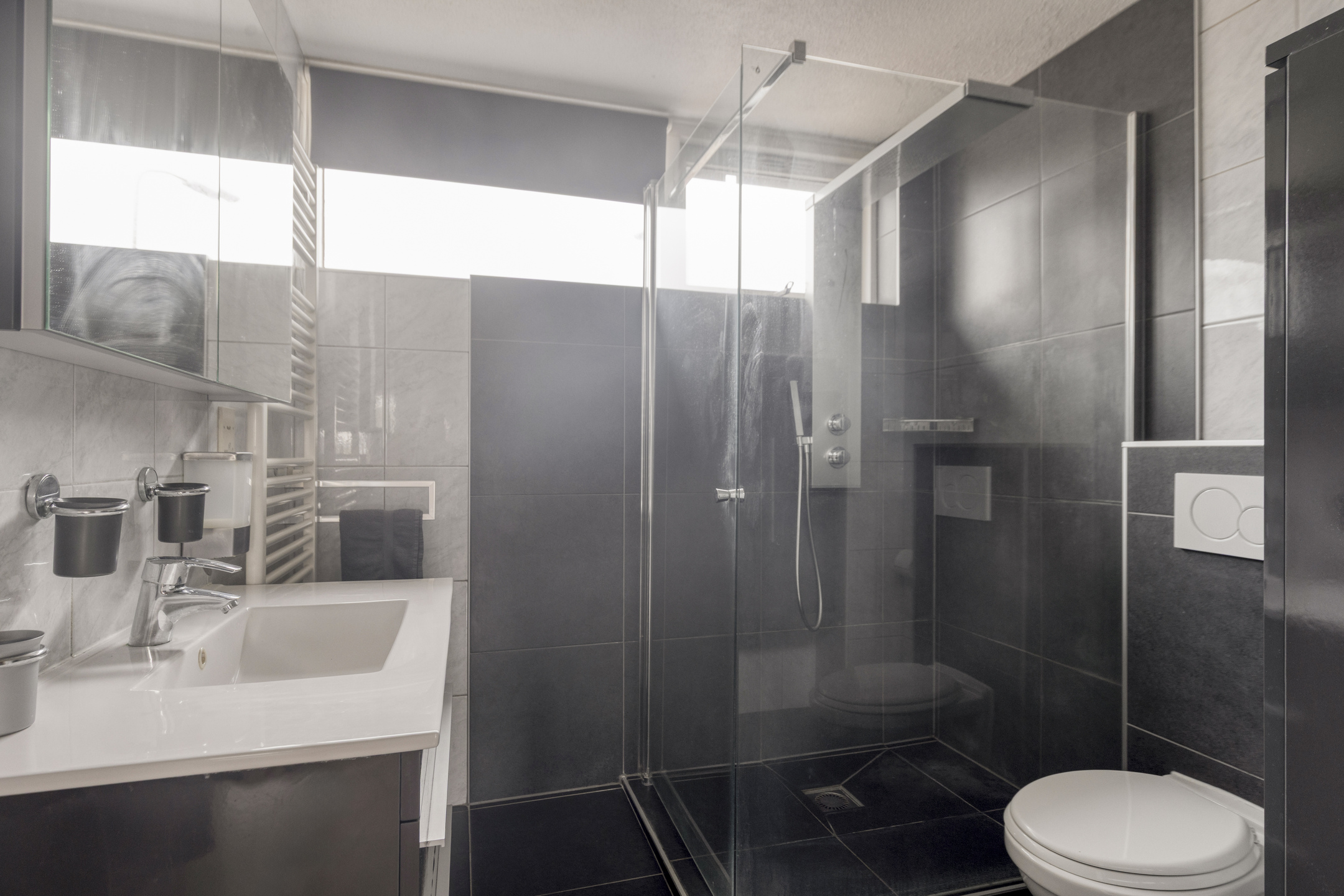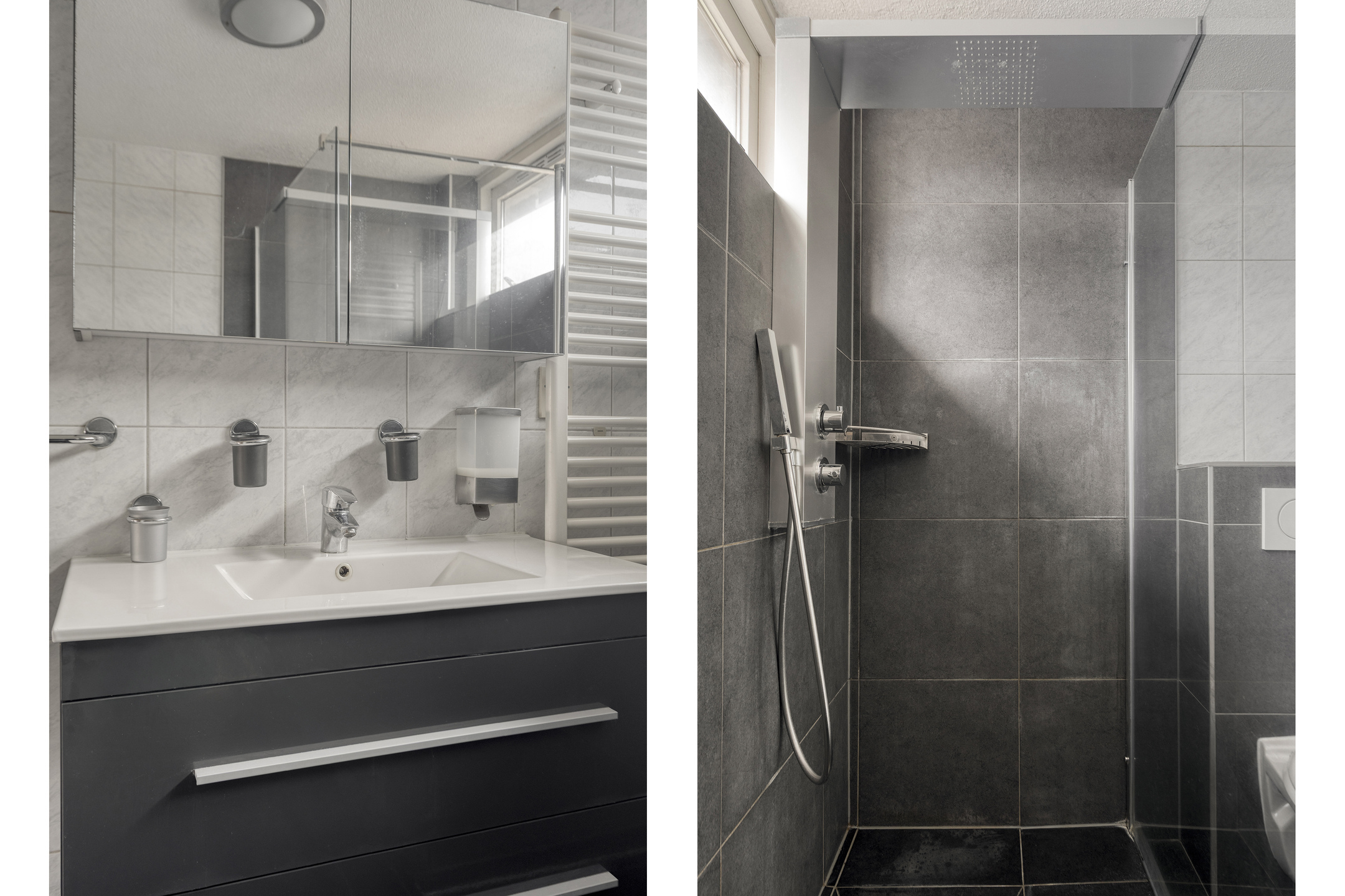 • Nette badkamer (circa 5,3 m2) voorzien van wandcloset, douche, vast wastafelmeubel, handdoekradiator, kast en wasmachineaansluiting.