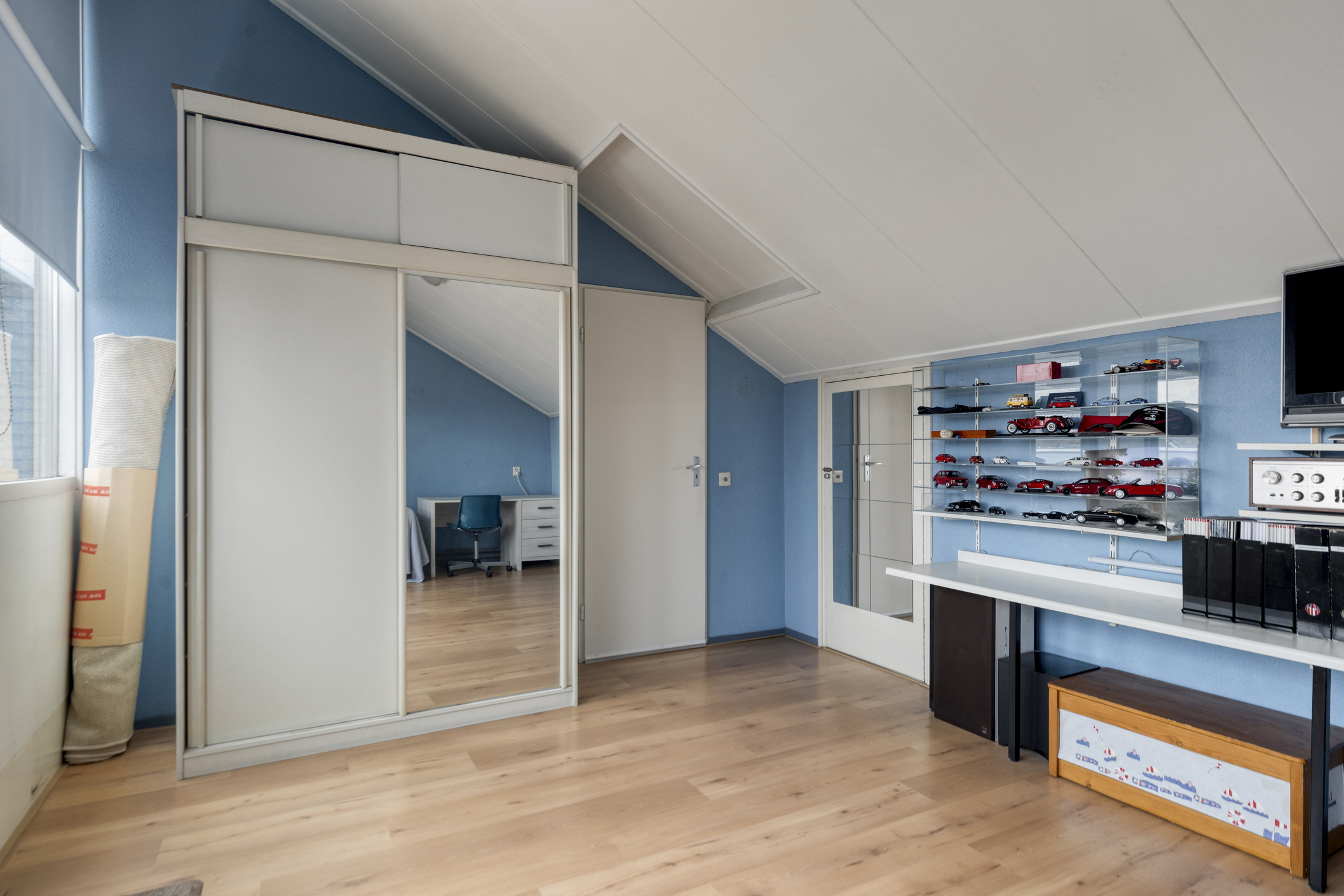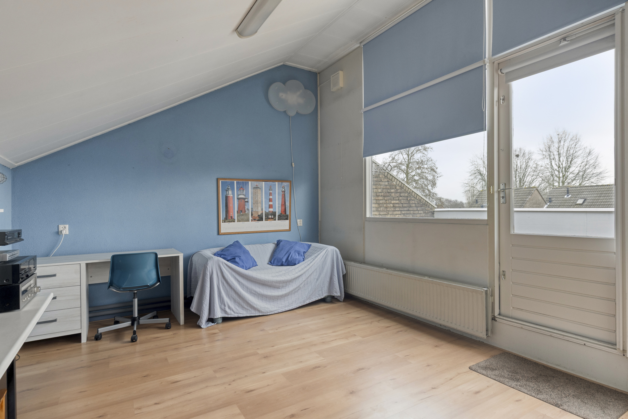 • Zeer royale slaapkamer IV met laminaatvloer en deur naar royaal dakterras.