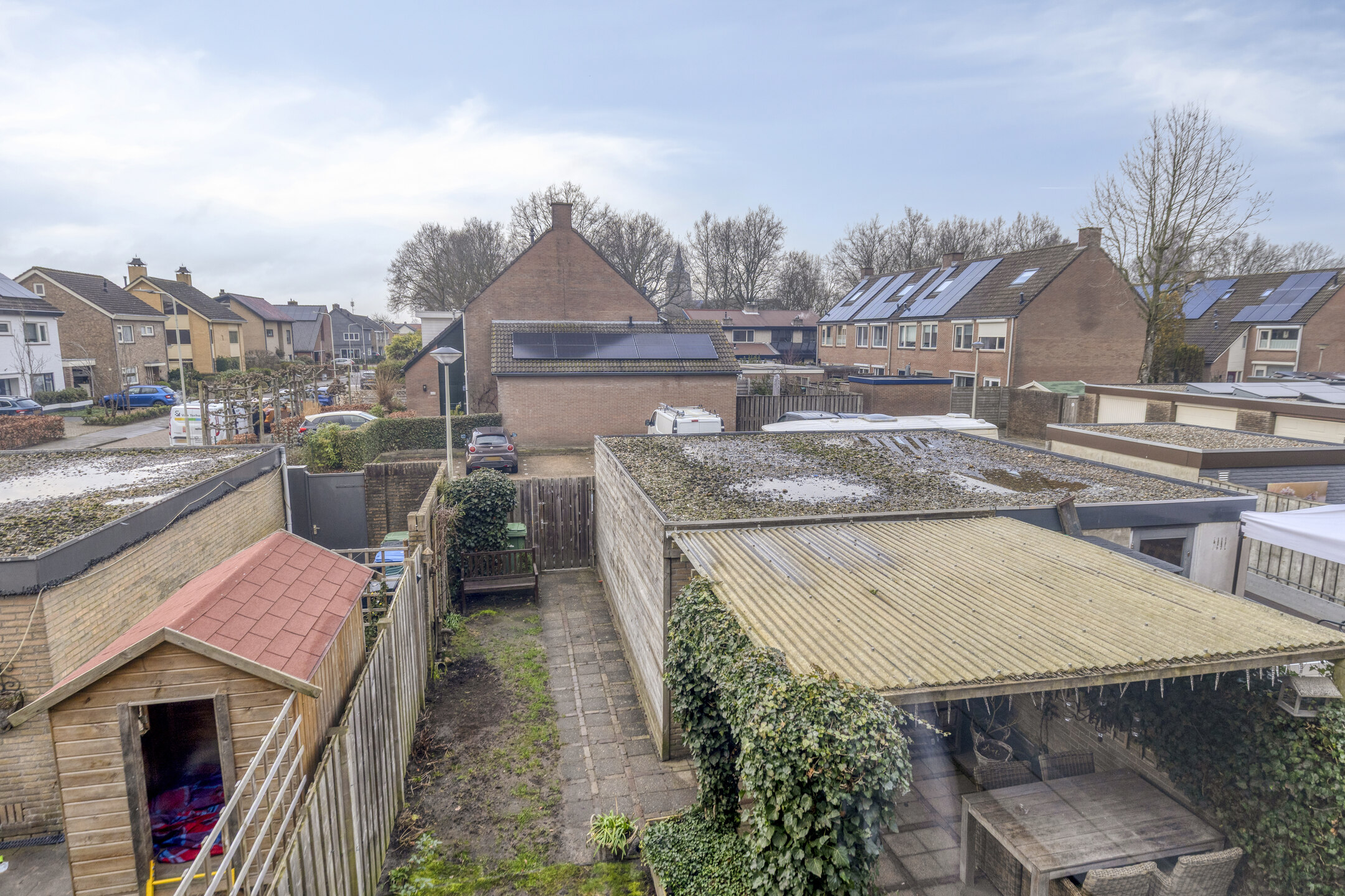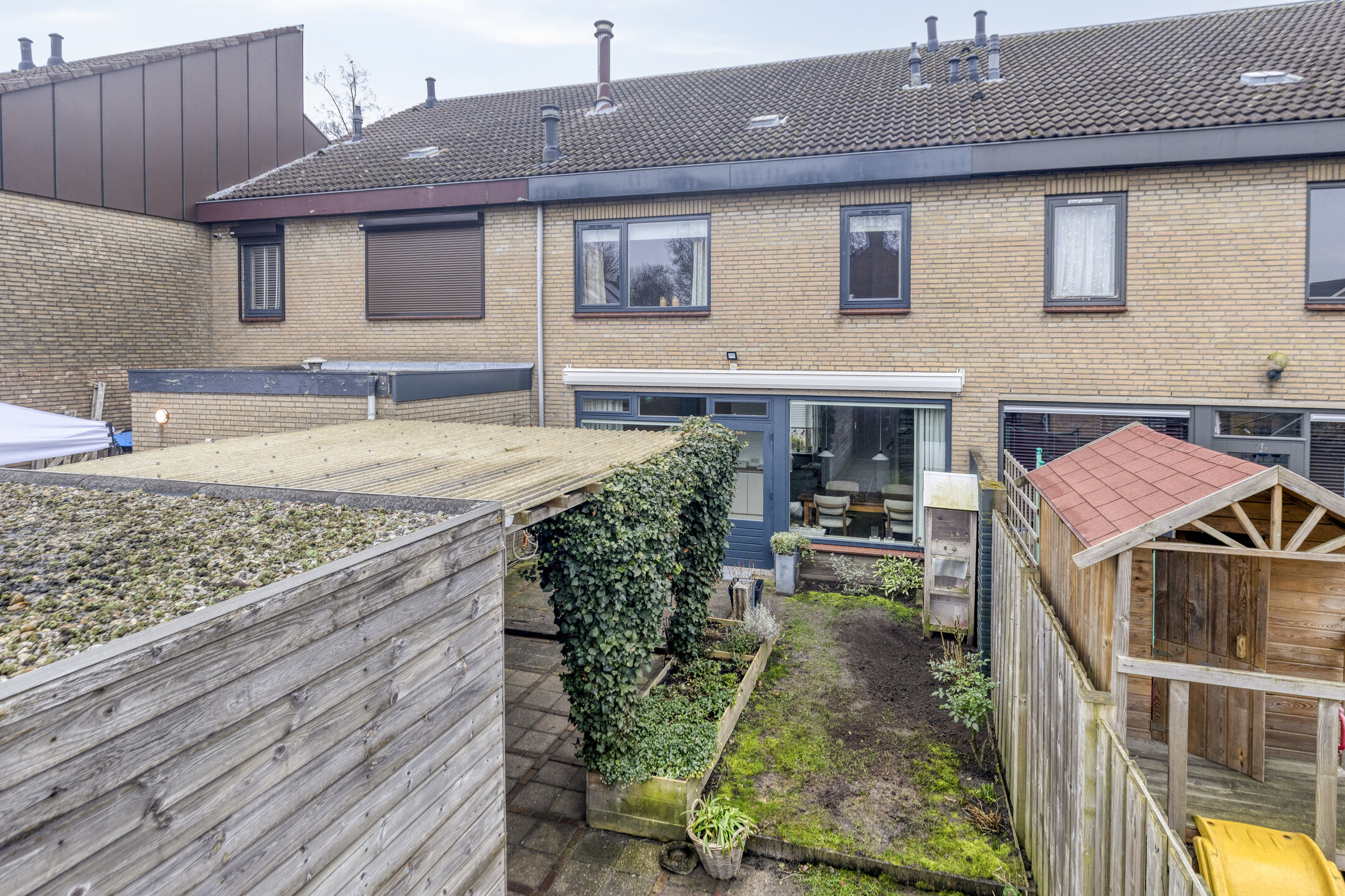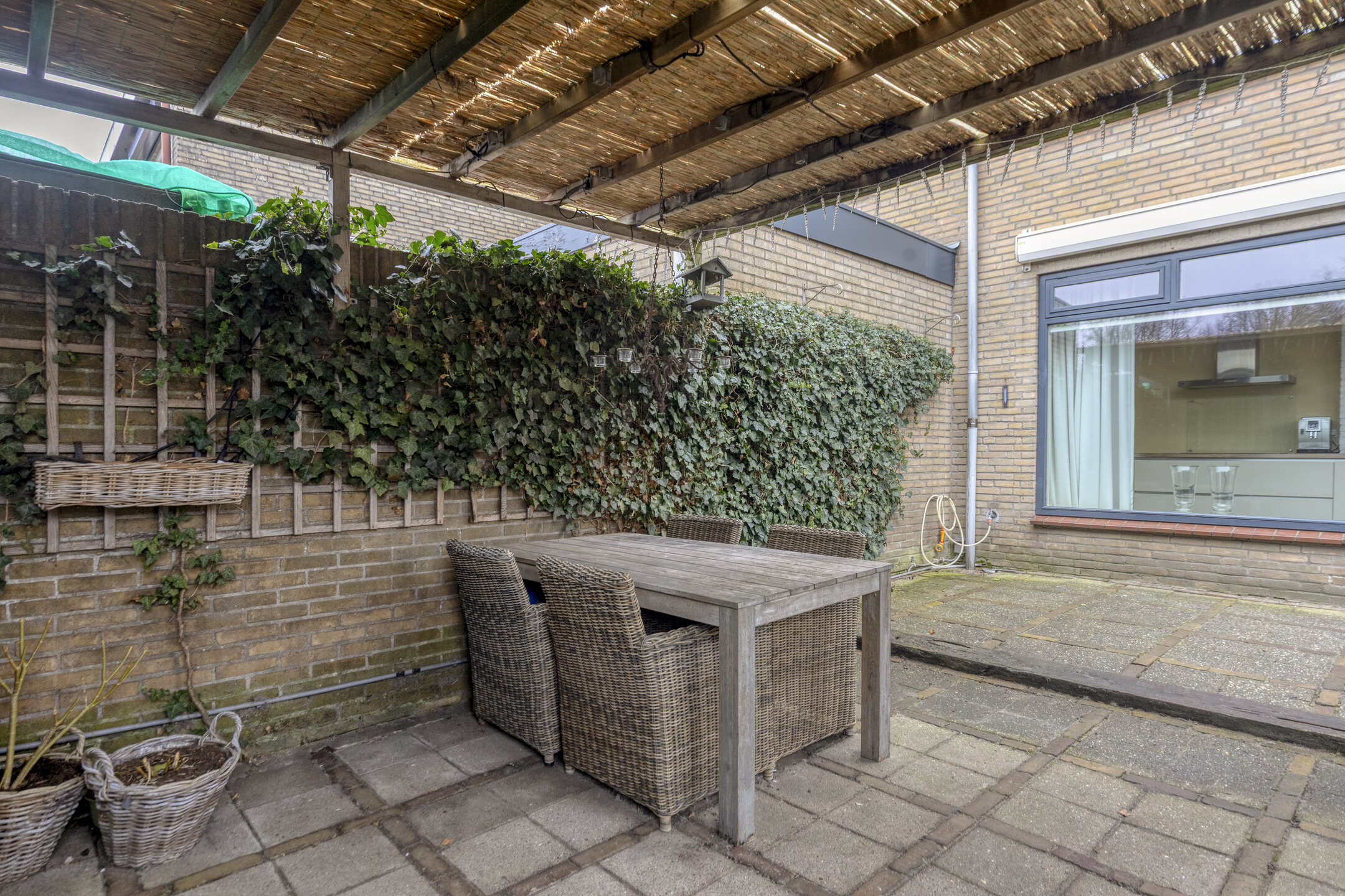 • Achtertuin met overdekt terras (circa 16 m2) en achterom.