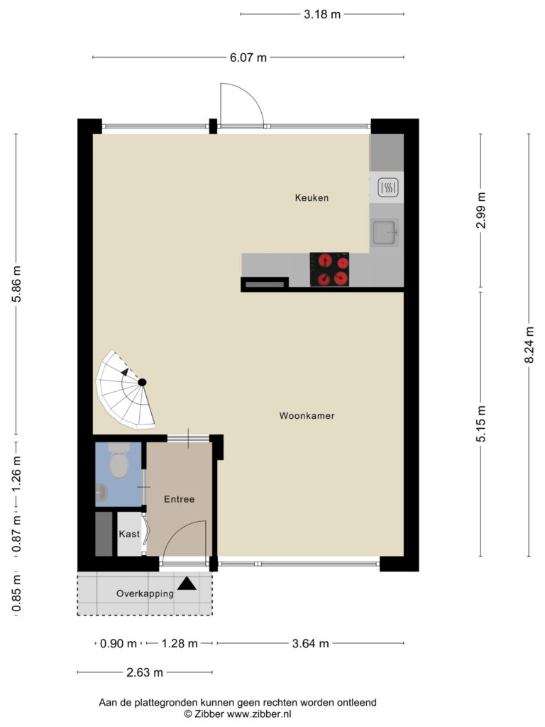 • Hal met meterkast (zes groepen, kookgroep en twee aardlekschakelaars).